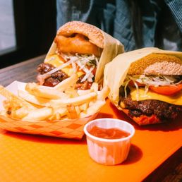 Came here during 11:50AM on a Sunday and there was already a line, but it was for the pub next door. Hung around for a tiny bit until it opened and I came in and was second to order. Got a Drive Thru, Fries, Corn Fritters, and extra Sauce, requested TO-GO. You can hang out in the bar while you wait which has free water, comfy couches, and a beer if you really need one. After about ten minutes my order was ready but it was a For Here order, asked if he can make it to-go, no hassles whatsoever. Decided to take it home but I live close enough so it was still fresh and hot. The burger was absolutely fantastic, honestly in our day and age smash style burgers are the only way to cook these burgers now. Lots of cheese lots of sauce, lots of fresh veggies on the burger too. Genuinely an amazing burger, did get a bit messy at the end without any changes. Corn fritters are tasty, but I love corn and cornmeal batter, it's honestly more like a hush puppy than the traditional corn fritters which is like a cluster of corn or so. I wish there was more corn though. It was mainly just eating mini corndogs without the protein and more batter. The biggest glaring problem with this is the french fries, I got them fresh and I eagerly had a bite of them on the drive home and even fresh from the fryer it was weak, limp, soggy, and not good. Even after dipping them on the special sauce on the side it was still drastically below mediocre. I NEVER bring up price as a negative thing in my reviews, but you literally cannot charge me $5 for fries I can make better in the microwave. Anyways, the burgers are genuinely amazing and delicious and some of the best, but what is a burger joint if you can't also enjoy the fries. Can the fries be fixed? Maybe if you ask them to well done it, sure. But I don't think I would want to order the fires again. Tldr: Get the burgers.