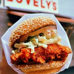 Lovely's produces delicious food. Period. Their smash burger is one of the best I've had in the Bay Area, as is their buttermilk hot chicken sandwich. For the smash burger, the patty is smashed so thin, it takes on a lace-like structure that's crunchy with each bite. The hot chicken is indeed very spicy and had me sweating. Great battering on the outside as well -- extremely crispy. Both the smash burger and the chicken patty were seasoned nicely. The burger buns were fresh and the soft texture complemented the burgers nicely. The burgers here are extraordinarily juicy from the added sauce, so you'll definitely want to grab some extra napkins, as you'll certainly be making a mess working through the burger. Moving on to the not-so-good parts of dining at Lovely's... the wait is as bad as everyone states. I waited 45 minutes to place my order and another 45 minutes to pick up my food. Honestly, this is absolutely absurd. Furthermore, the order batching the kitchen does means if your friend makes the first cut and you make the second, you guys will be dining 30 minutes apart from each other. Operational inefficiencies make me hate Lovely's so much, and yet their burgers are irresistible. If you have the time and patience -- and a LOT of it, I would give Lovely's a try. Otherwise, you are better off getting your burger fix elsewhere.